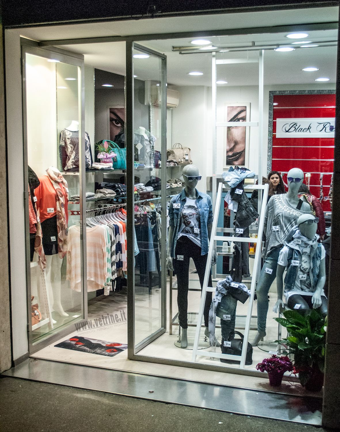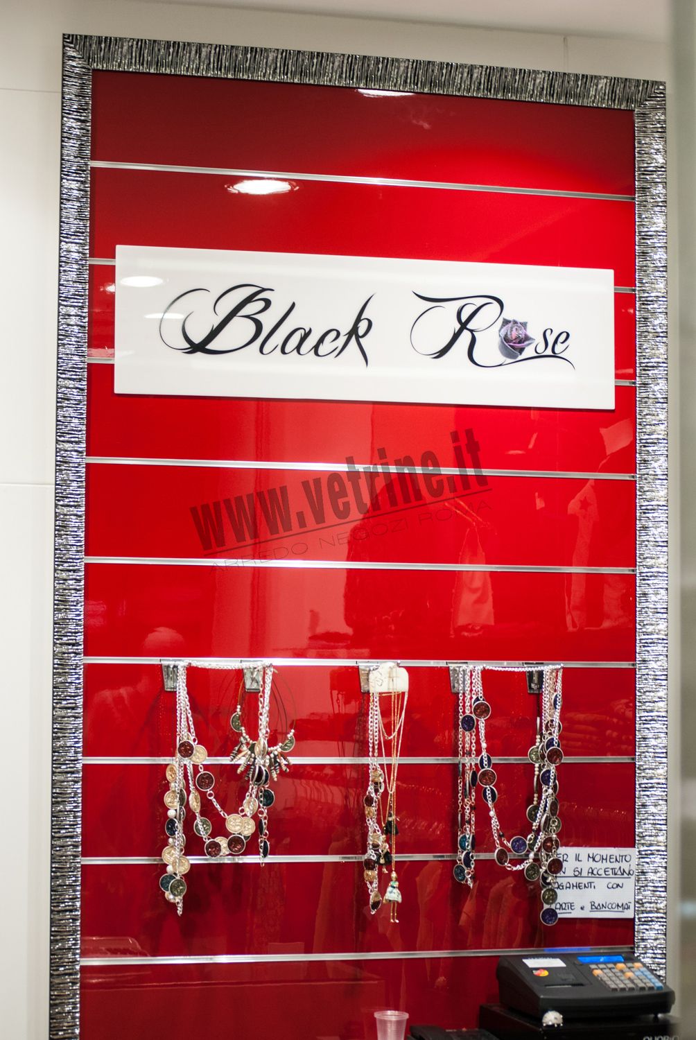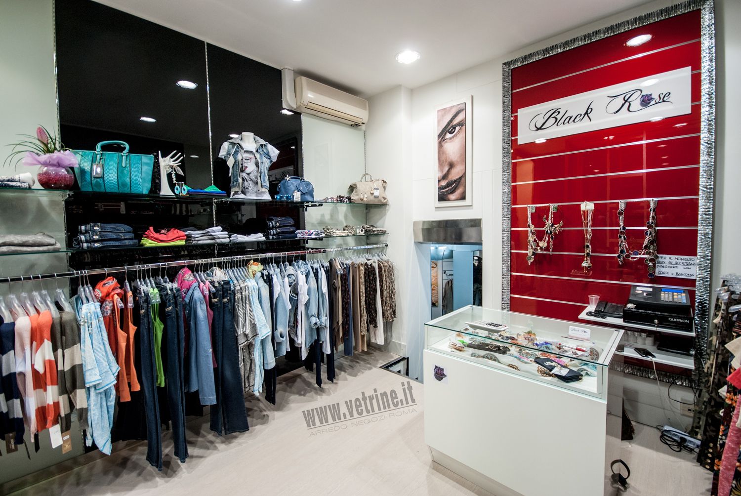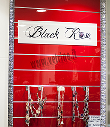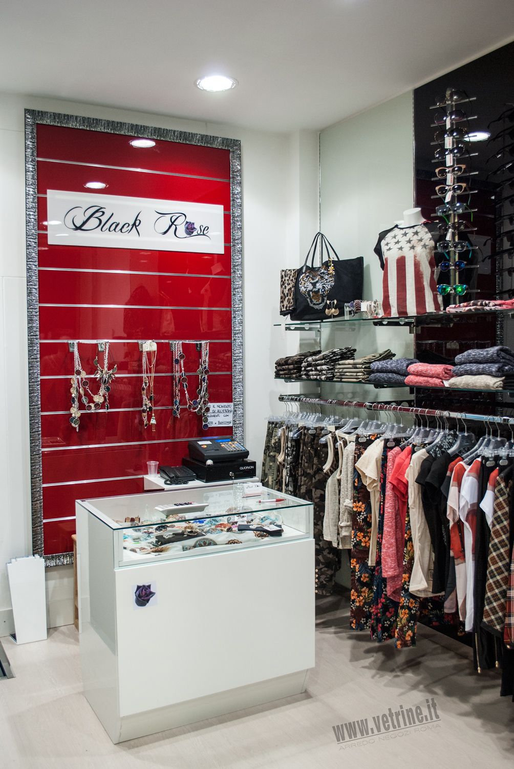 Vi presentiamo l'ultima realizzazione: BLACK ROSE!!! Negozio di abbigliamento donna gestito da Grazia e Giulia, ragazze intraprendenti e simpatiche, sito in via Di Acqua Bullicante, 243 a Roma! La modularità delle cremagliere con fondo in vetro bianco e nero e l'eleganza del pannello dogato lucido enfatizzato da cornici ricercate rendono unico e accogliente l'ambiente!!!