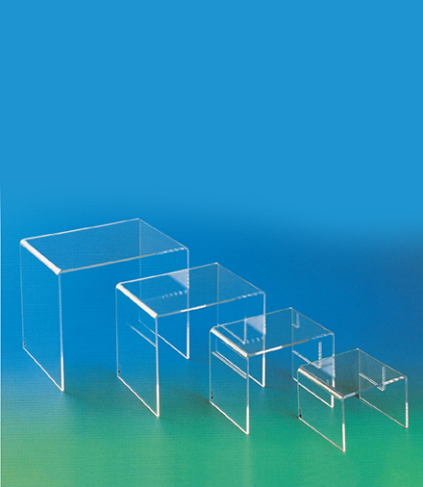 Set di 4 tavolini per vetrine a scala in plex trasparente, spessore 5 mm